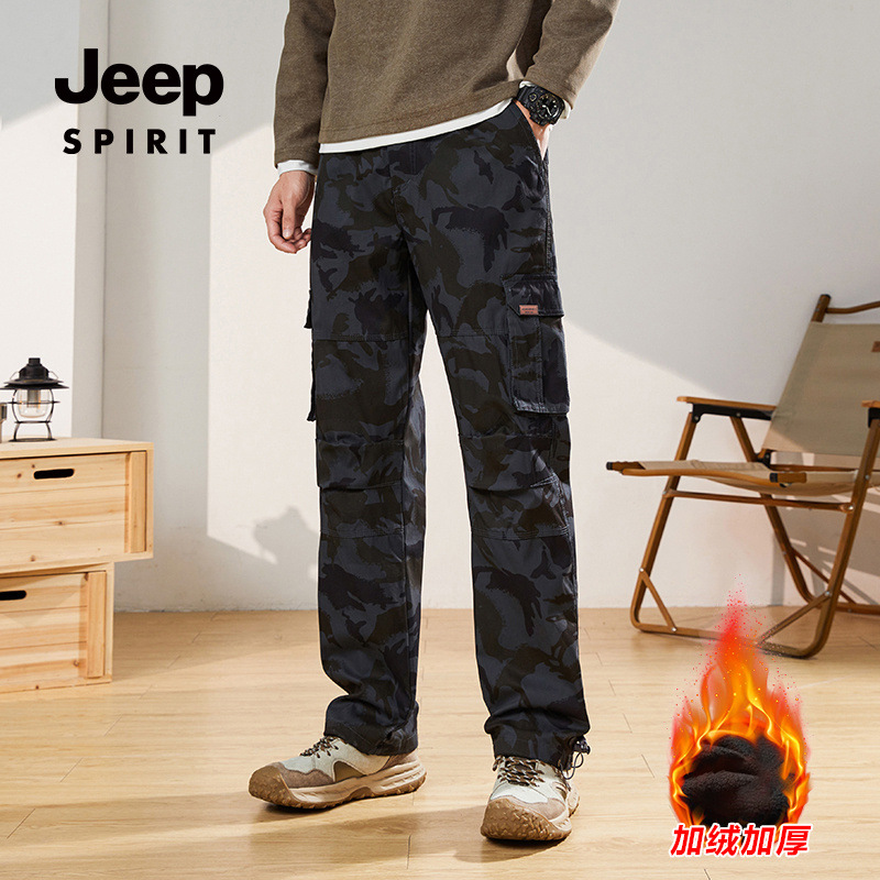 裤 工装 男秋冬季 新款 Jeep 宽松潮牌多口袋加绒男生休闲长裤 spirit