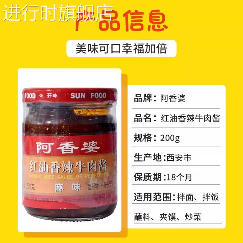 阿香婆香辣牛肉酱红油麻味孜然素味淡甜淡辣口味家商用官方旗舰店