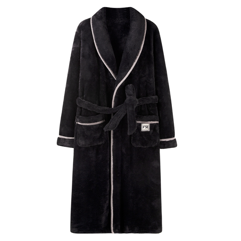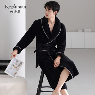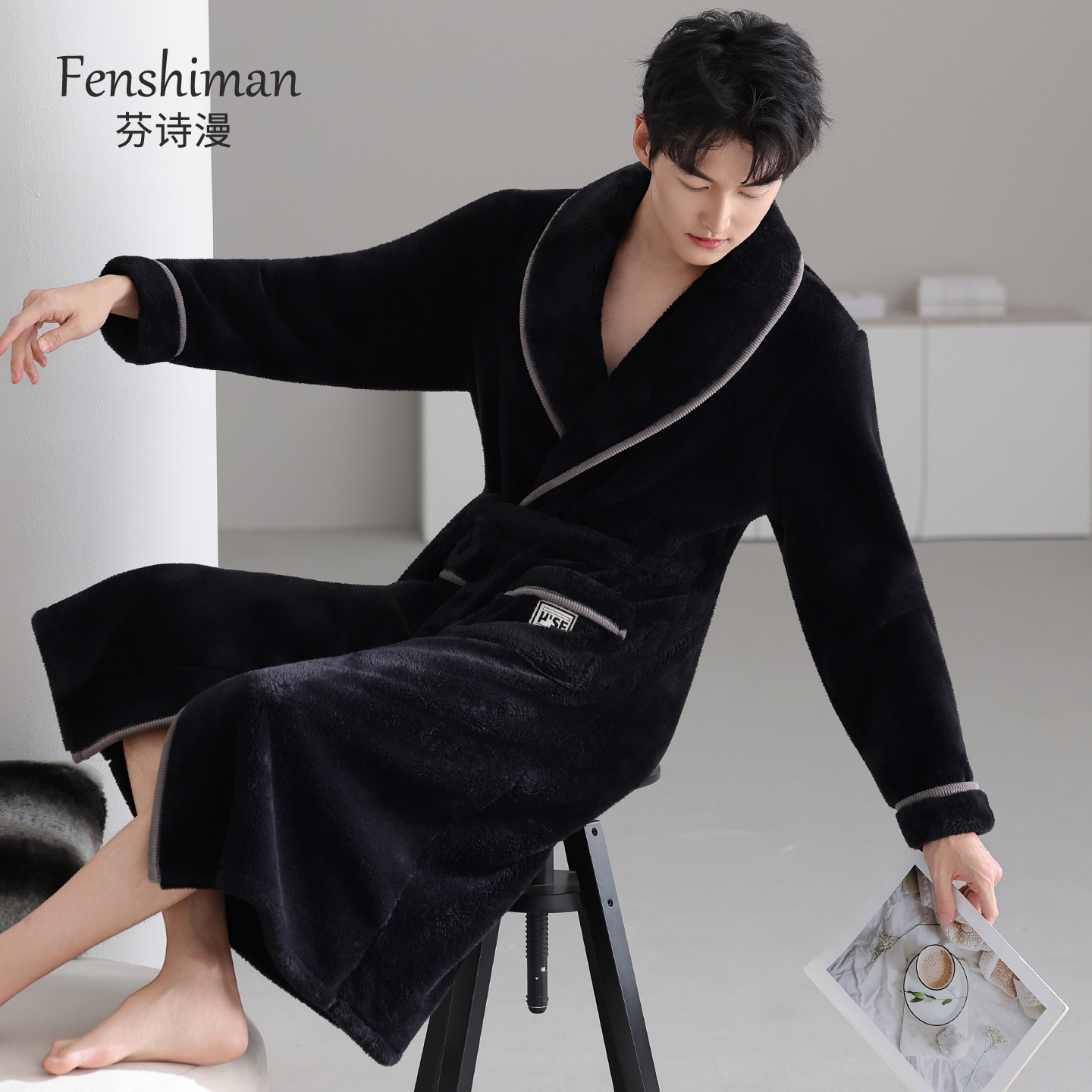 浴袍睡衣秋冬款 珊瑚绒加厚加绒长款 法兰绒浴衣家居服 冬季 睡袍男士