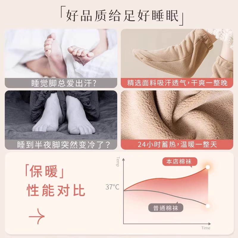 睡觉穿 袜子女睡眠袜月子袜松口冬孕妇脚浮肿宽松中筒防冻脚大码