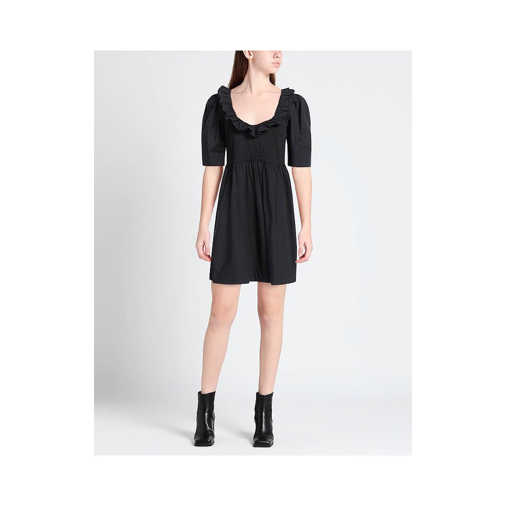 歌莉娅黑色连衣裙设计感夏季 荷叶边拼接针织小黑裙1C4R4H5J0