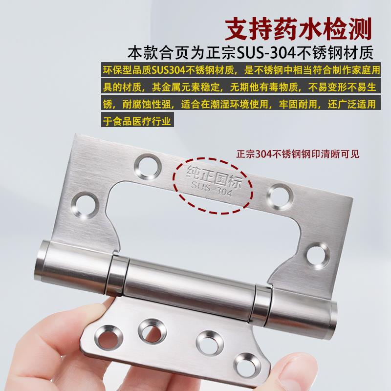 304不锈钢子母合页木门室内门蝴蝶字母活页静音轴承4寸免开槽加厚