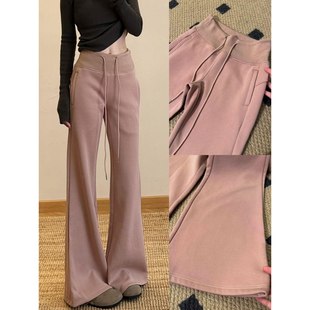 微喇卫裤 喇叭运动裤 粉色大码 高腰显瘦垂感小个子美式 女秋2025新款