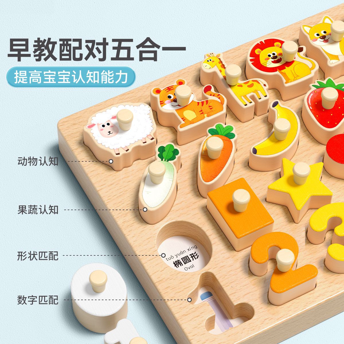 婴幼儿手抓板套住蒙氏早教宝宝形状认知配对嵌板儿童益智积木玩具