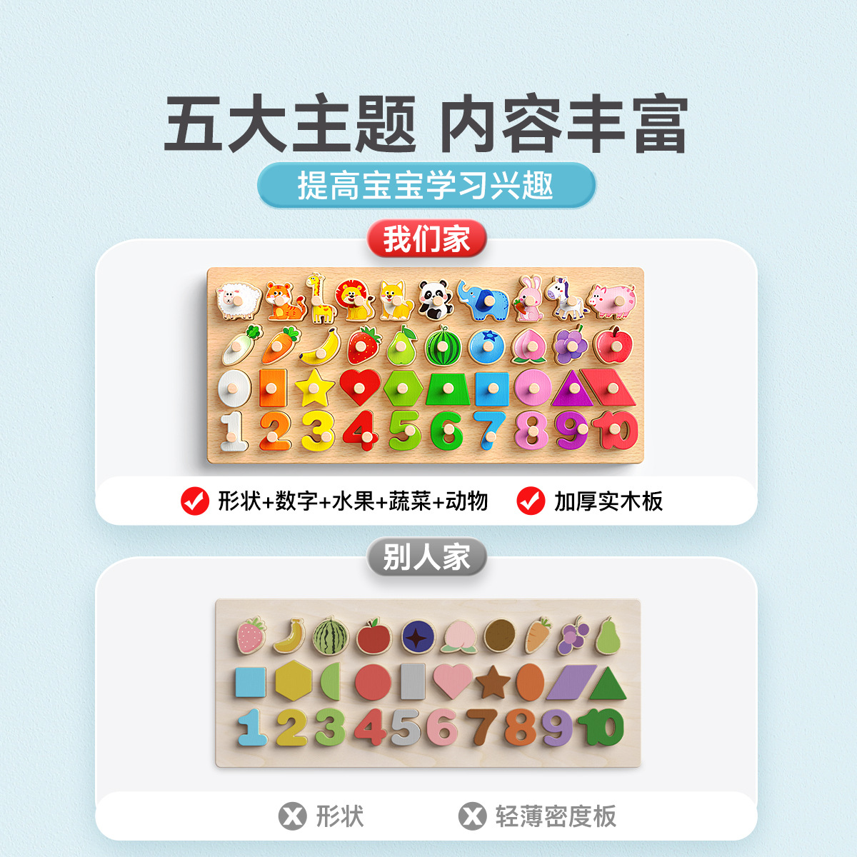 手抓板拼图蒙氏早教益智玩具嵌板儿童认知配对一岁半宝宝婴儿积木