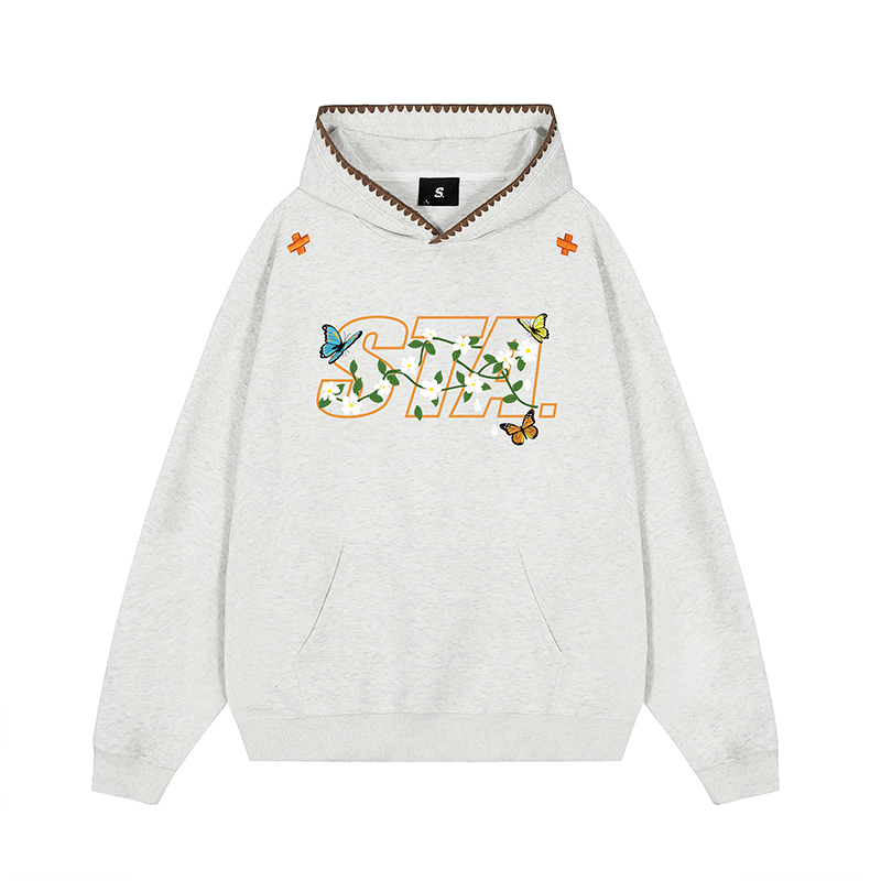 国潮牌美式 上衣 宽松圆领刺绣卫衣女秋冬加绒复古oversize套头长袖
