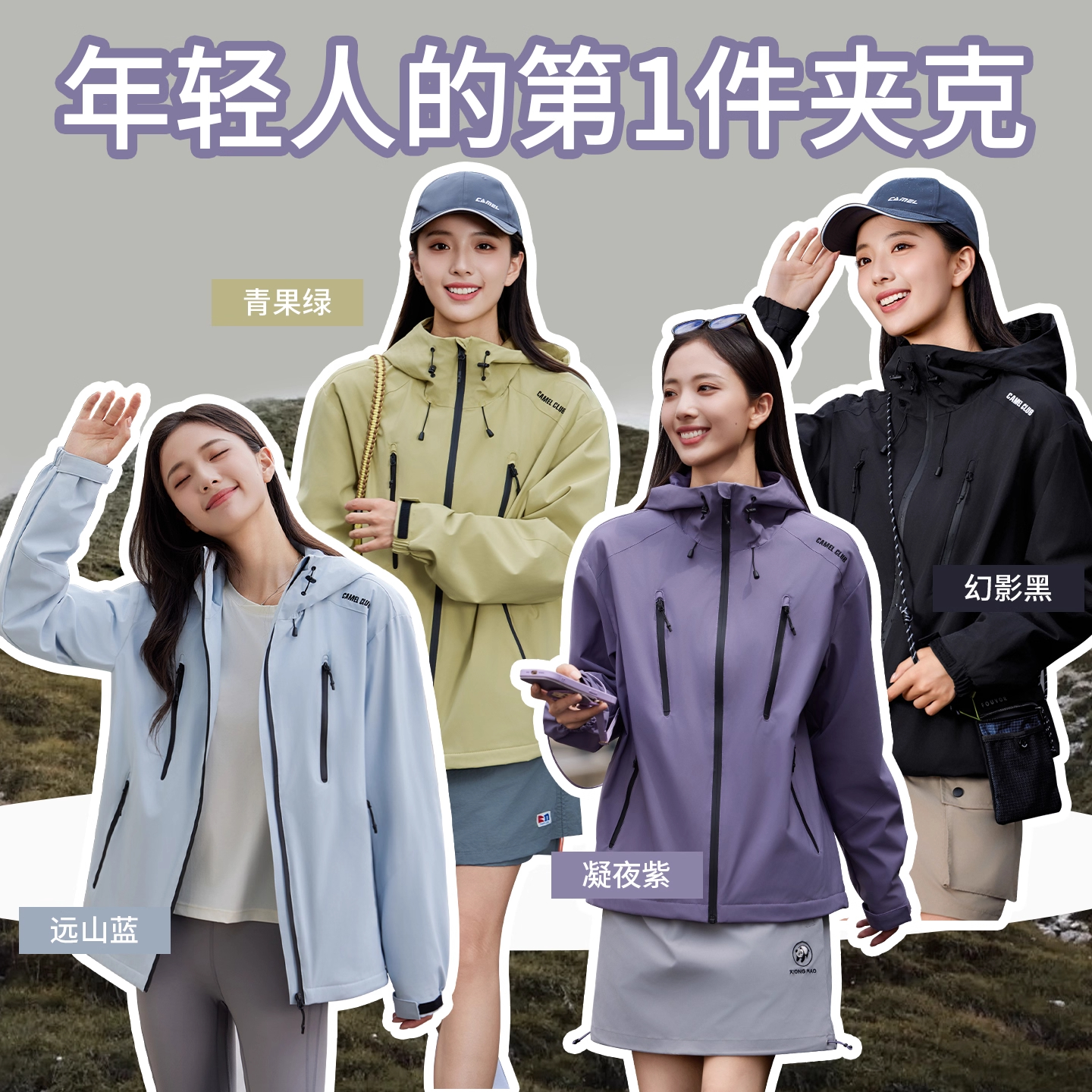 骆驼拒水夹克运动外套秋冬单层保暖户外服男女防水防风徒步登山服
