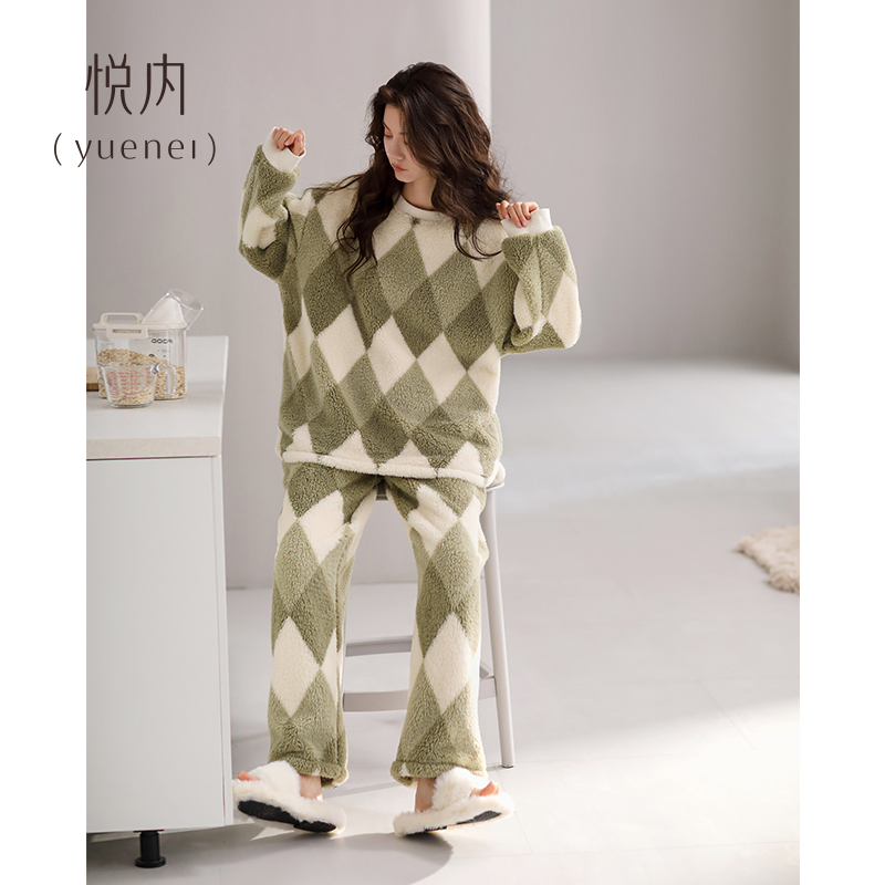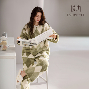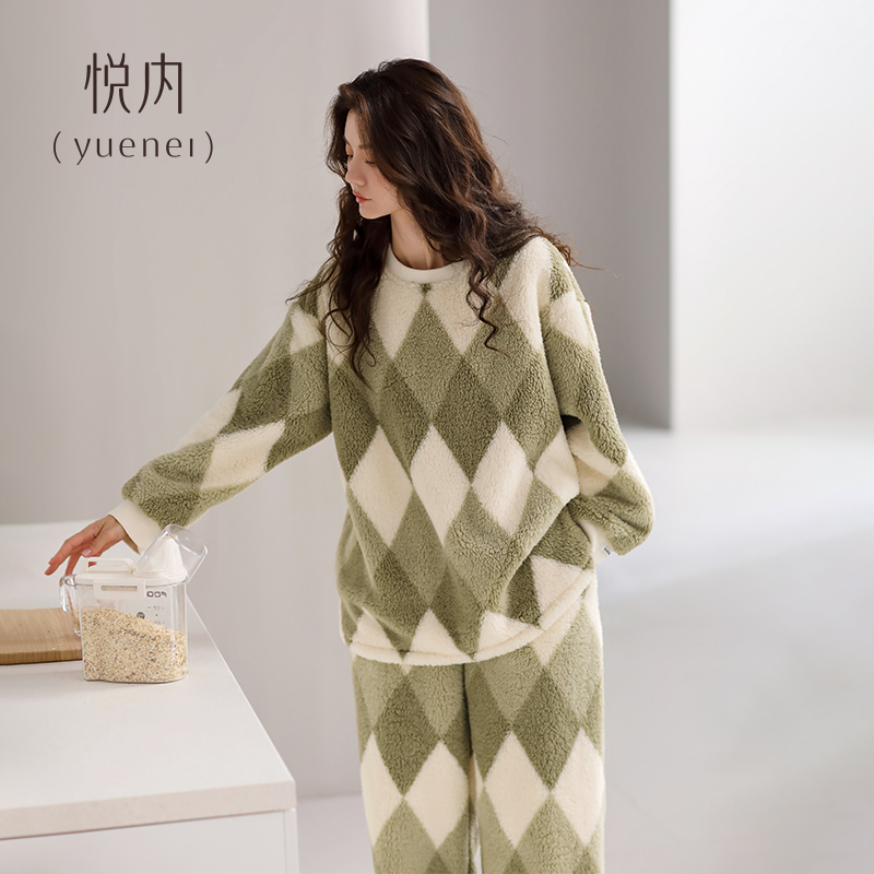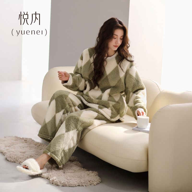珊瑚绒加厚法兰绒家居服冬天圆领套头毛绒 冬款 悦内睡衣女款 秋冬季