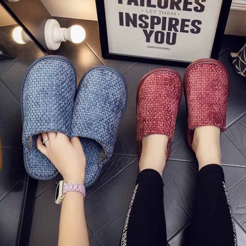 冬布艺室内静音防滑保暖家女情侣居家拖鞋 底地板防滑1006e