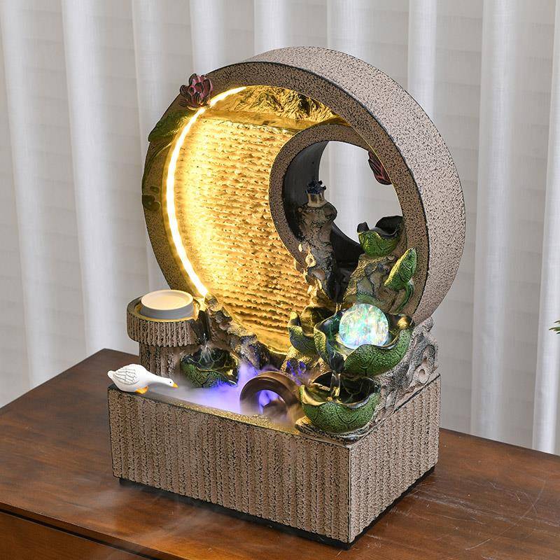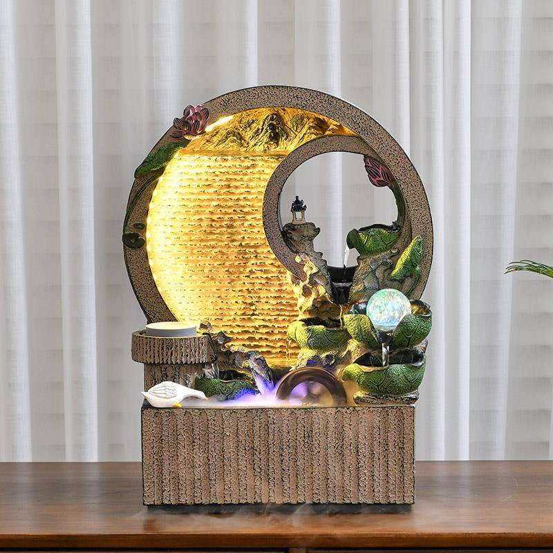 新中式 流水生财摆件循环水入户风水轮客厅办公室喷泉水景开业礼物