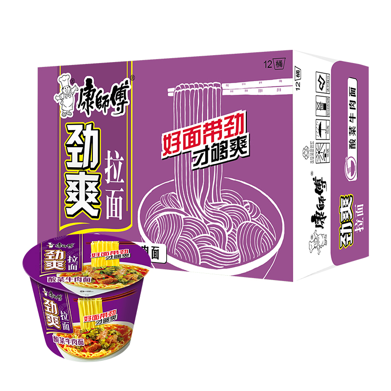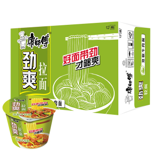 康师傅方便面劲爽桶装 夜宵泡面12桶整箱批发 红烧酸菜泡椒多口味
