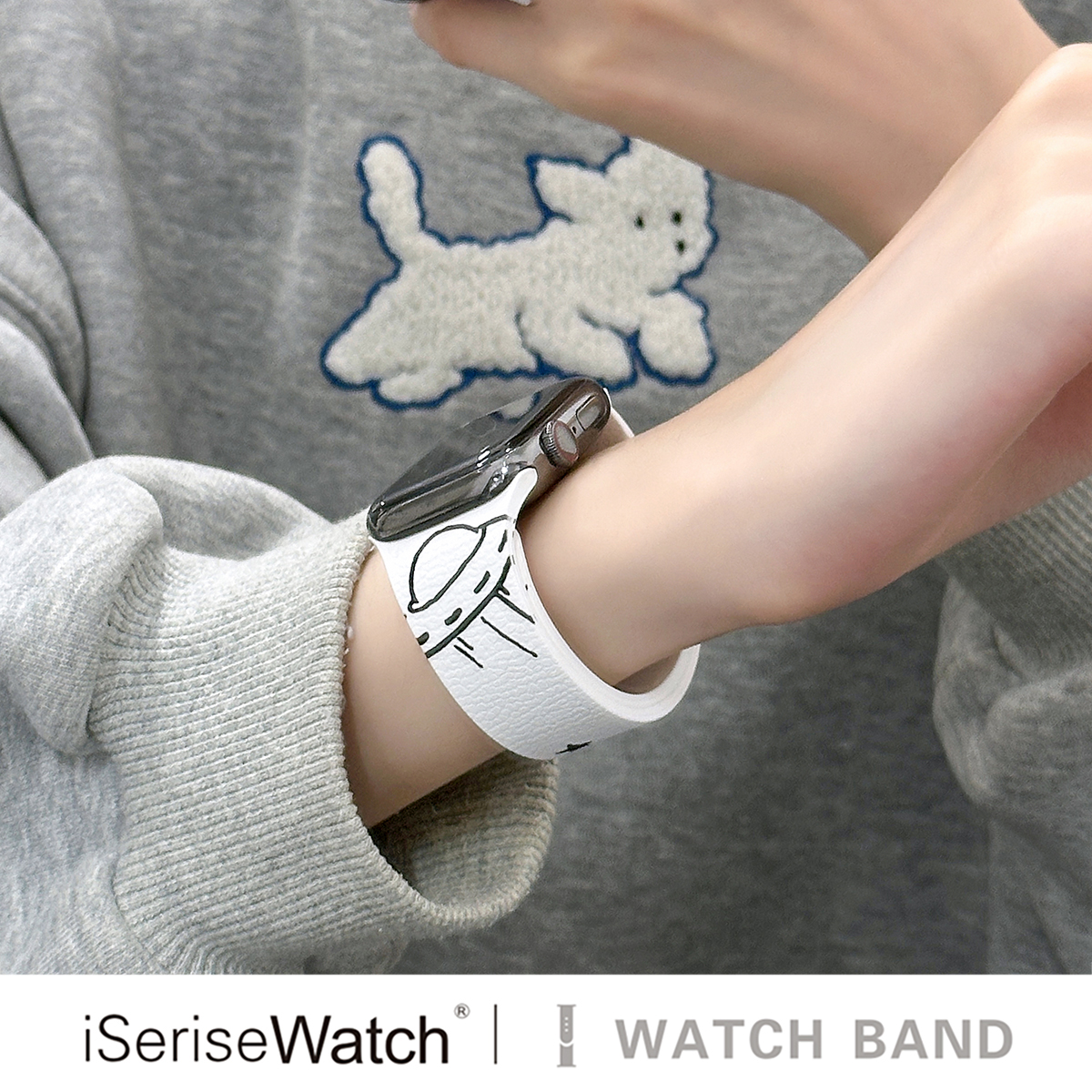 iserisewatch适用于applewatch11代se苹果手表s10二次元 41mm卡通创意 漫画涂鸦硅胶磁吸表带iwatch9运动男女款