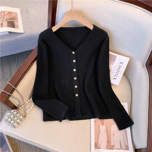 胖妹妹气质修身 毛衣女大码 1007k 针织衫 秋冬打底内搭V领坑条开衫