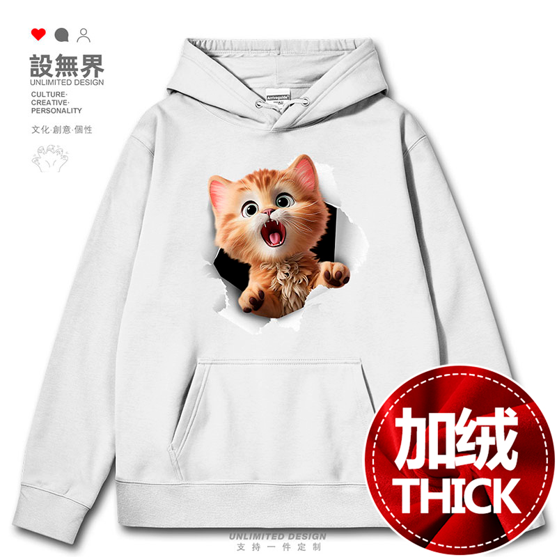 潮流可爱3D破洞惊讶猫咪卡通铲屎官连帽卫衣男女帽衫 无界 0015设