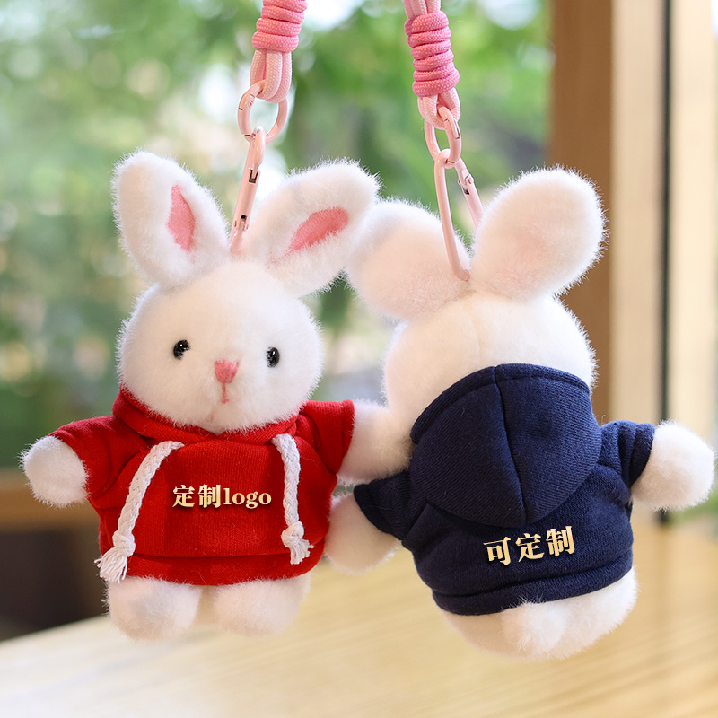 小白兔子包包挂件玩偶logo定制穿衣兔兔毛绒玩具公司活动礼品印字