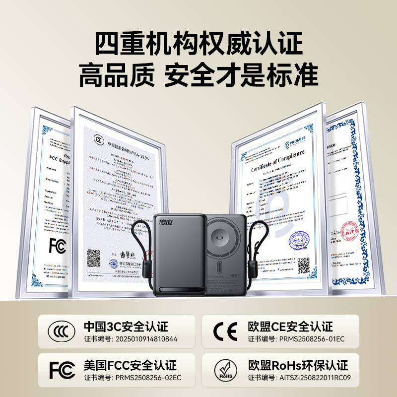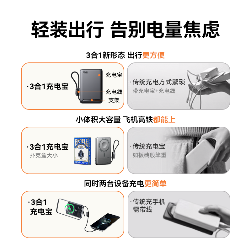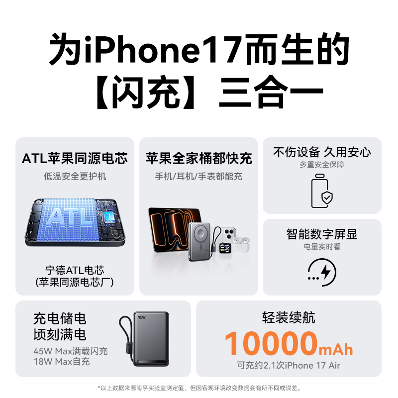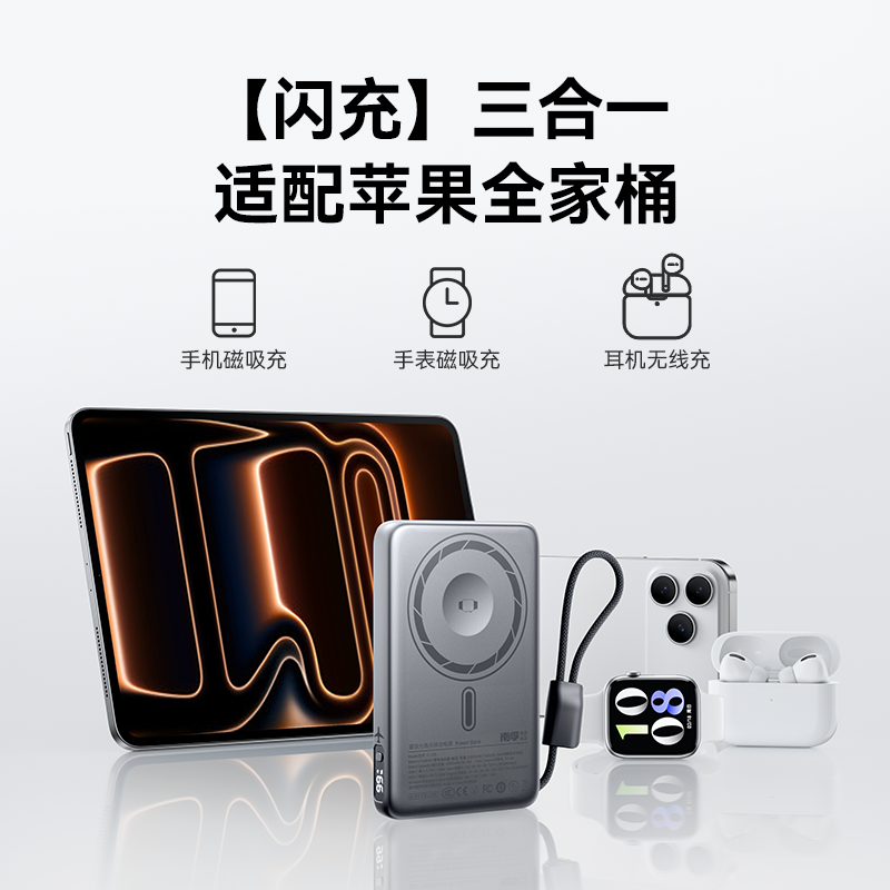 充电宝2025新款 南孚传应自带线三合一45W磁吸超薄式 快充适用苹果全家桶iPhone17可上飞机3C认证 重磅新品