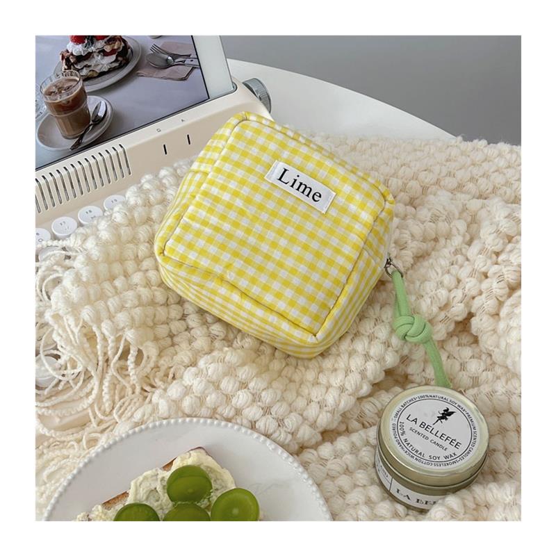 日系棉布格子姨妈巾收纳包卫生棉便携随身月收纳卫生巾事包小方包