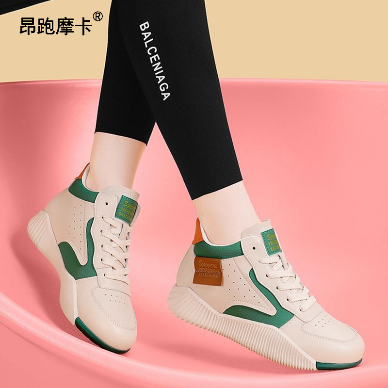 男鞋 子学生运动鞋 新款 皮面鞋 秋冬高帮休闲鞋 电池熊猫鸿星尔克板鞋