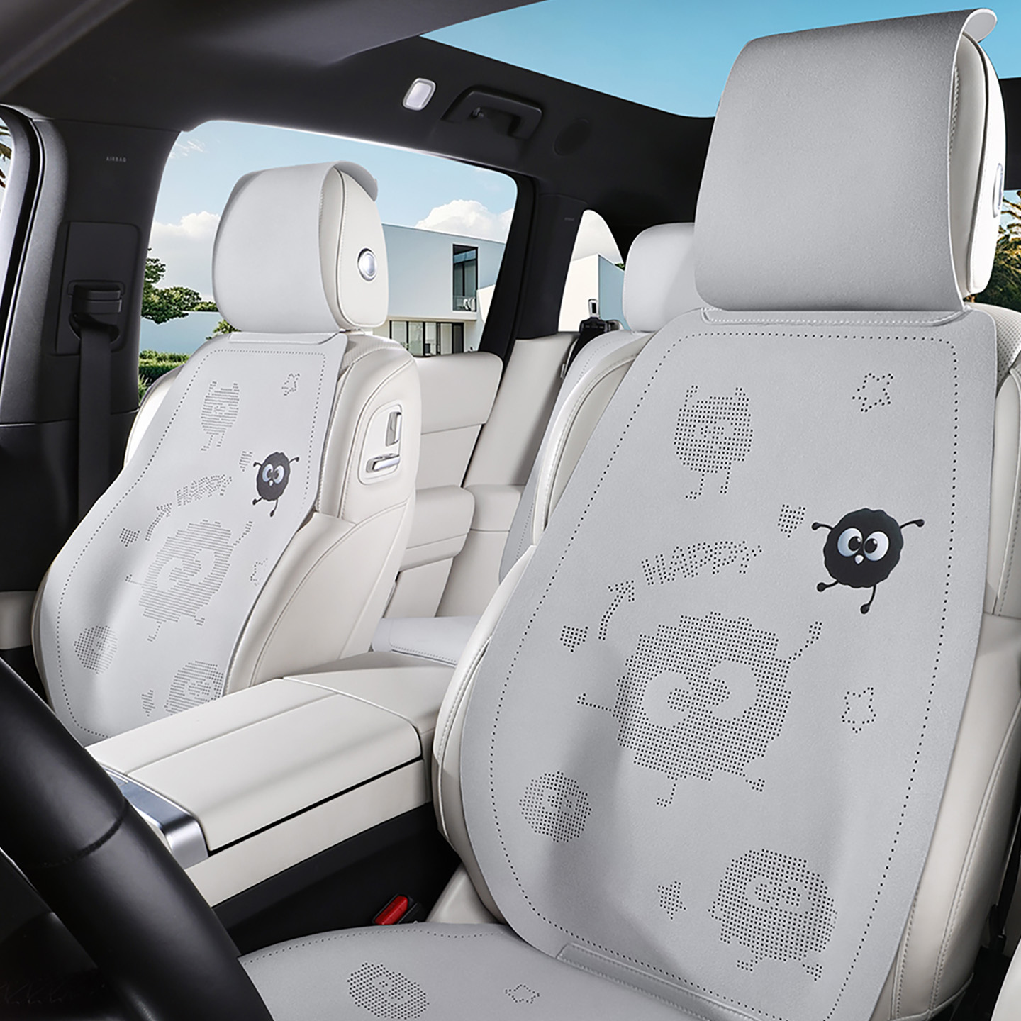 卡通汽车坐垫四季 车垫座套高级感座椅套透气 通用座垫翻毛皮冬季