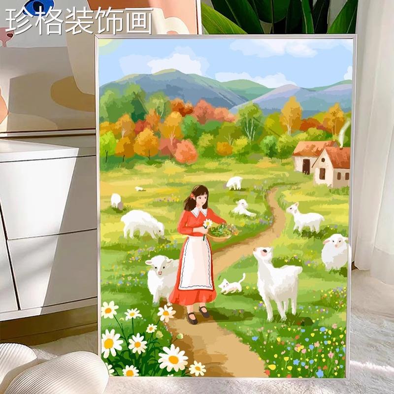 田SUC色乡园生活数字画diy填充治愈系手绘油手工丙烯油彩村景装 饰