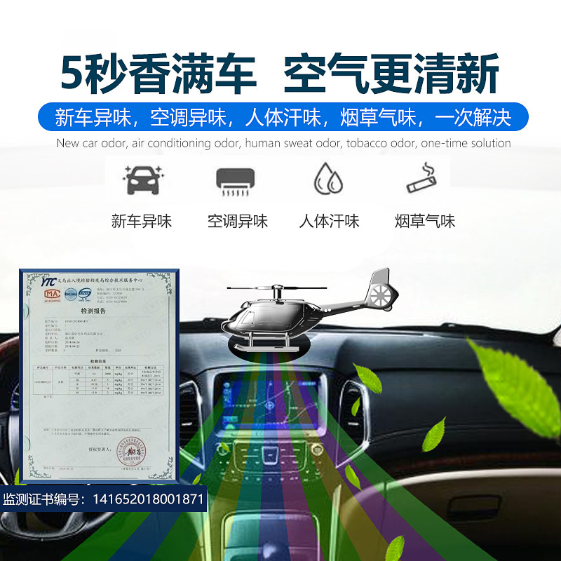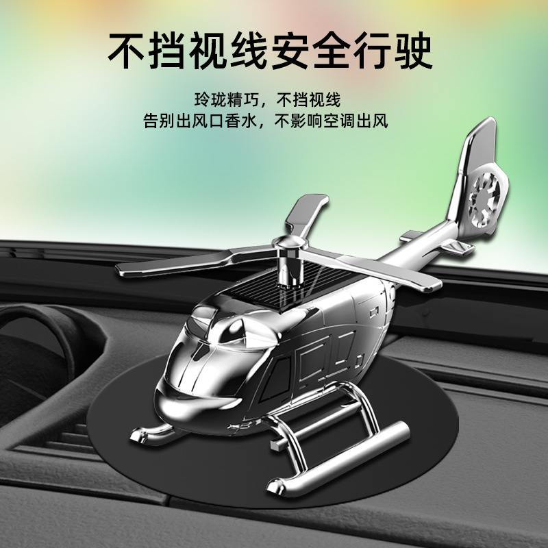 新款 金属太阳能旋转直升飞机香薰摆件汽车用品 创意车载车用香水