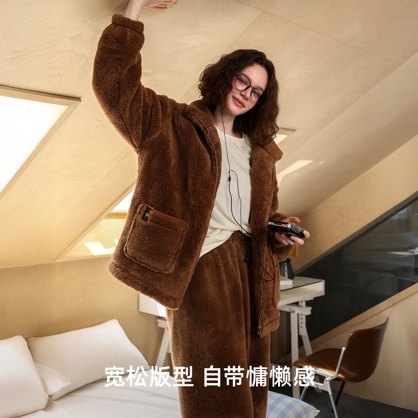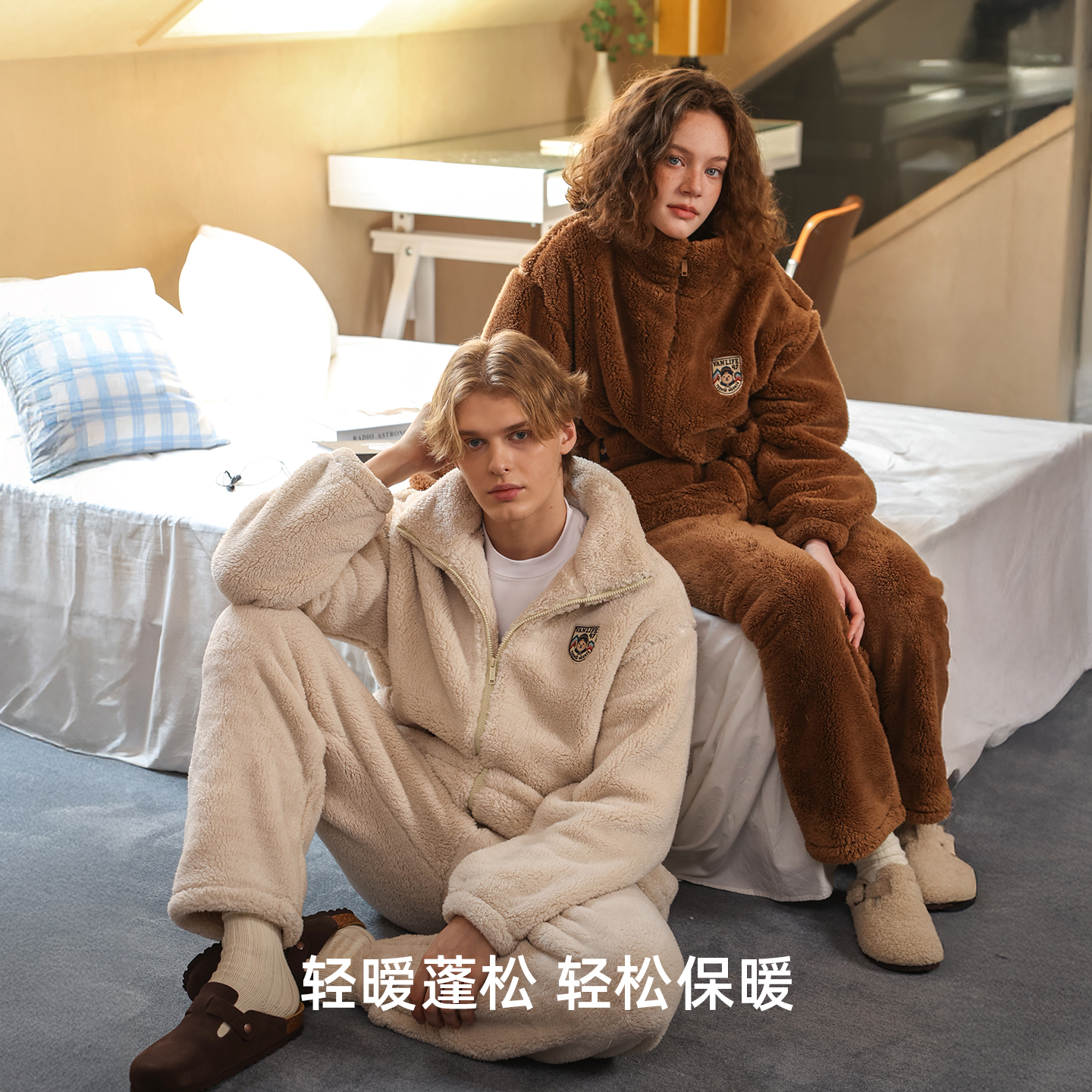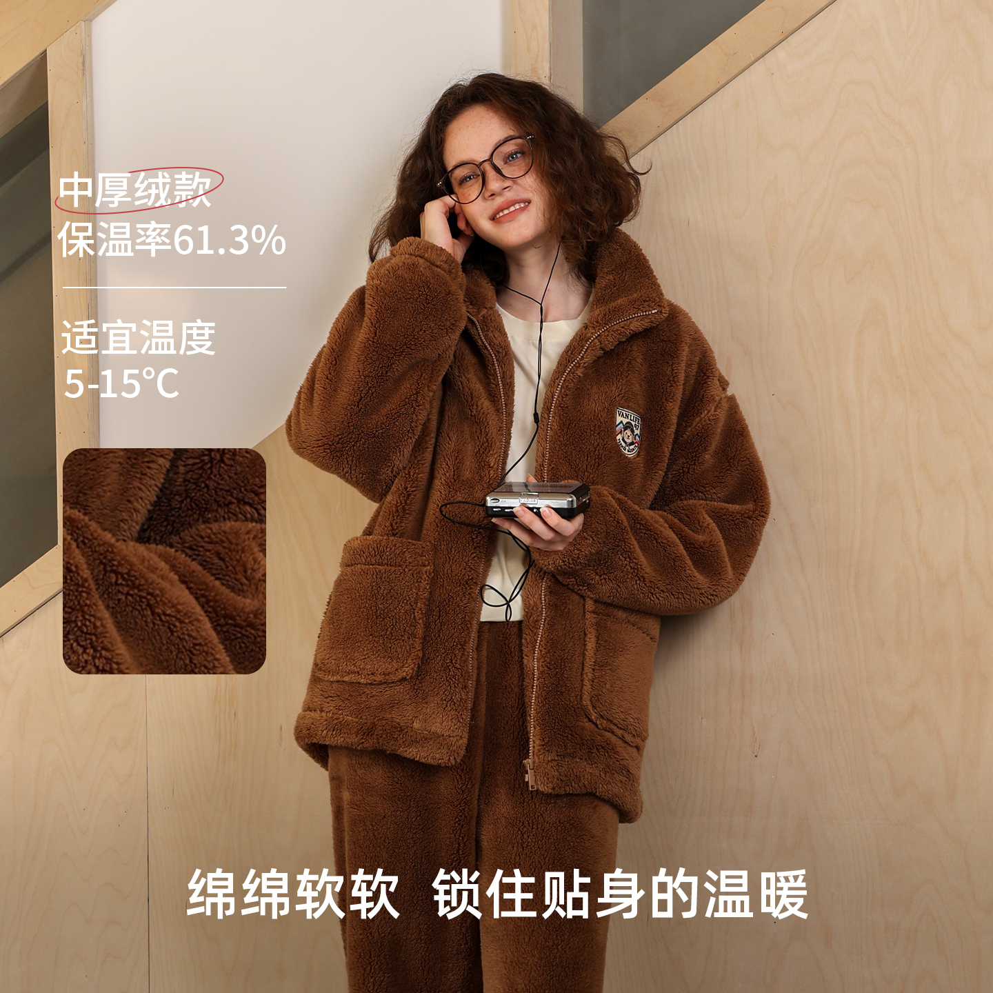 男士 家居服套装 中厚抗静电薄绒开衫 红豆暖暖绒海岛绒睡衣女秋冬款