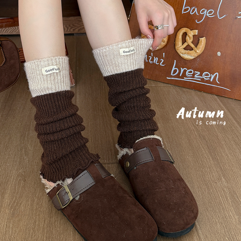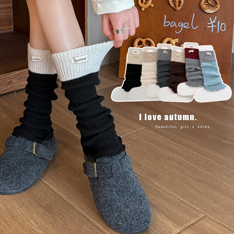 儿童袜套堆堆袜女童春秋季 小腿袜女孩宝宝拼色花边腿套 搭配小皮鞋