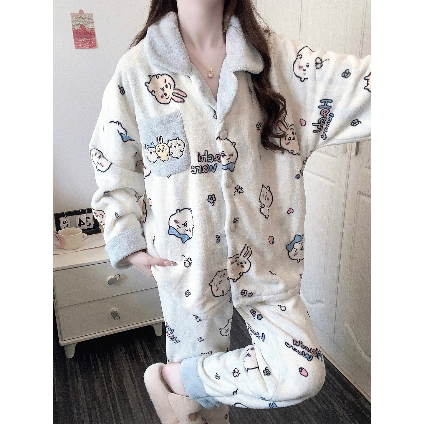 珊瑚绒家居服套装 学生可外穿开衫 卡通2025新款 软萌小八睡衣女冬季