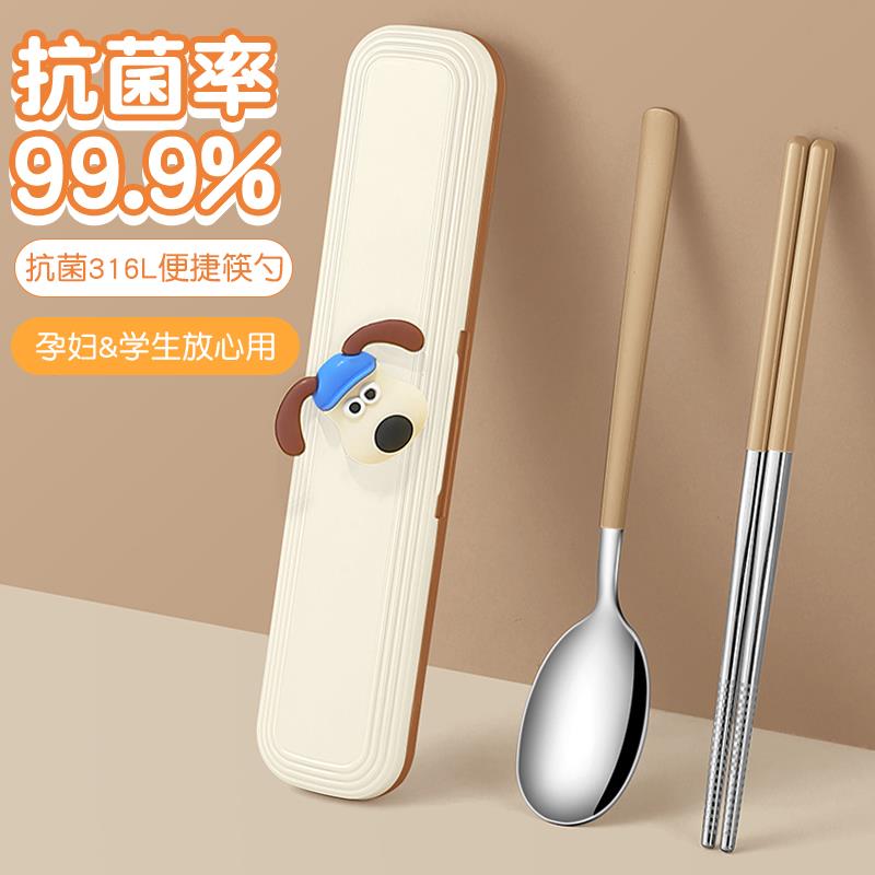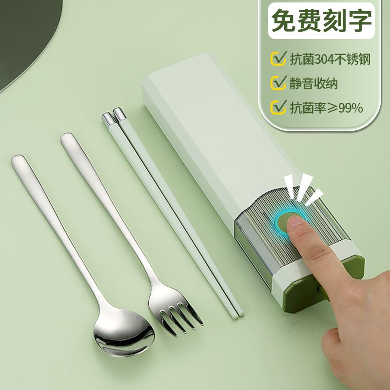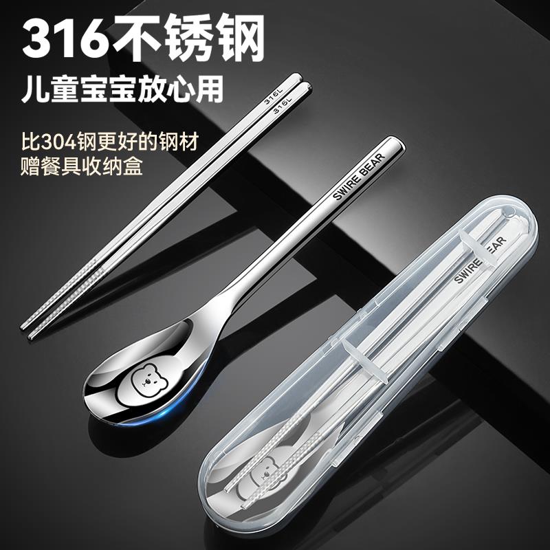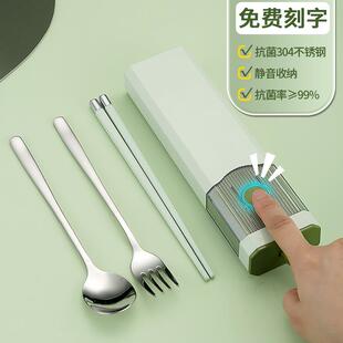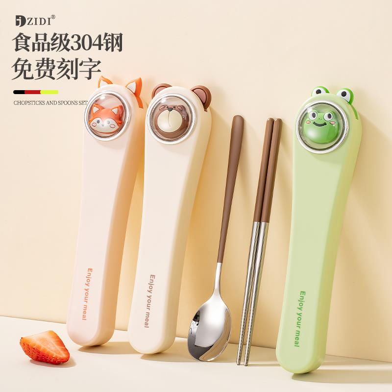 儿童筷子勺子叉子套装 小学生304不锈钢三件套卡通便携餐具收纳盒