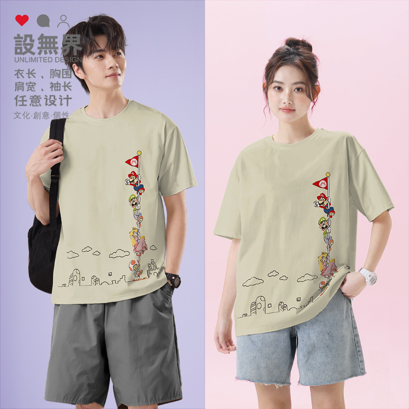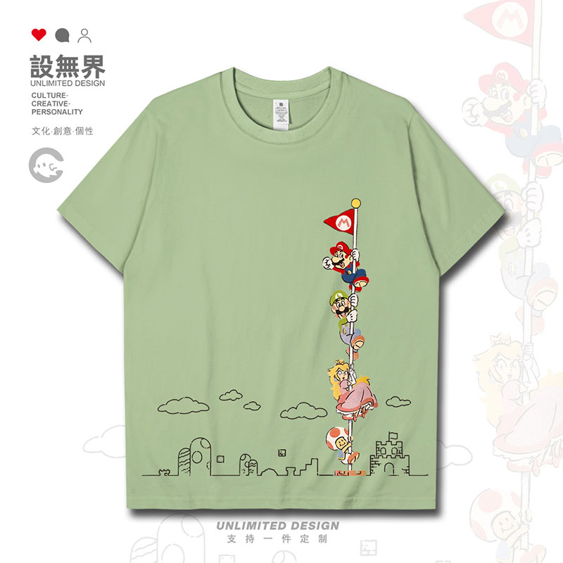 超级玛丽城堡解救公主通关创意卡通周边短袖 无界 T恤男女潮0017设