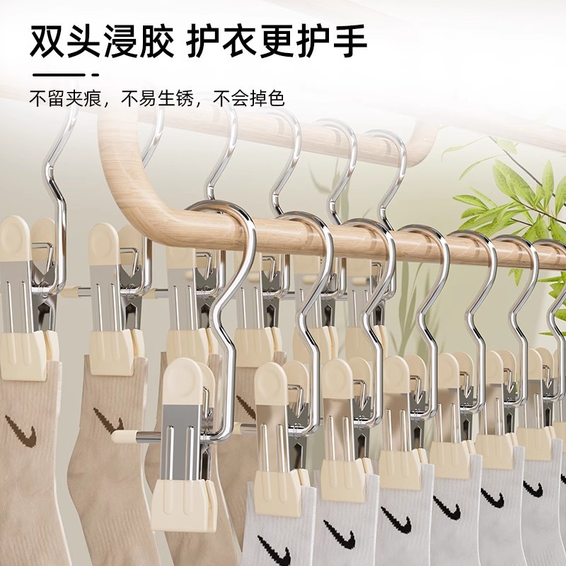 多功能带挂钩夹子不锈钢金属衣服无痕裤 架单个小衣夹 子夹晾衣夹裤