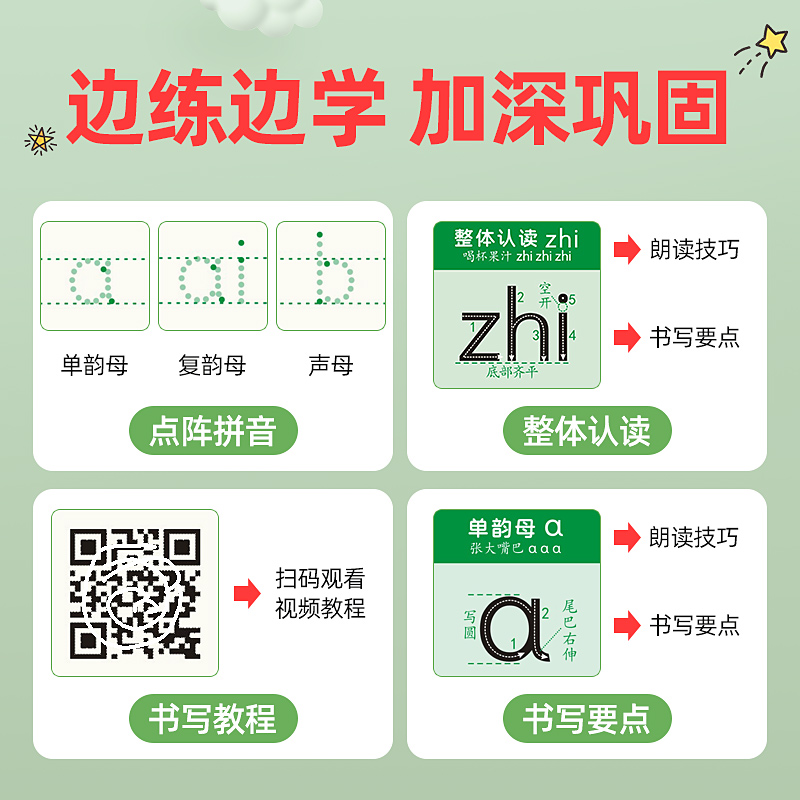 拼音练字帖儿童点阵拼音描红本控笔训练专项练习纸幼小衔接宝宝大中小班练习册全套一年级幼升小写字训练每日一练教材临摹练字神器