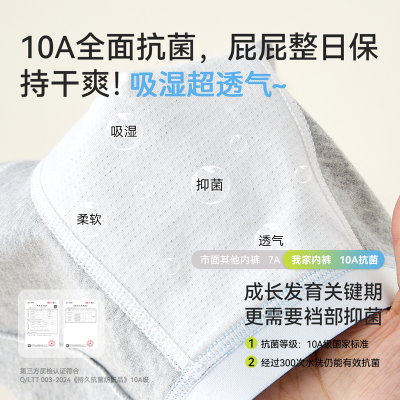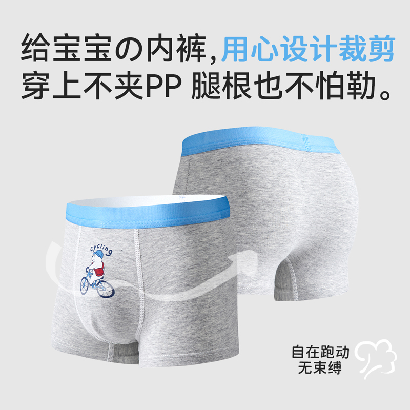 青少年四角短裤 3件 纯棉透气裆新款 运动内裤 男生 蕉内银皮301S男士