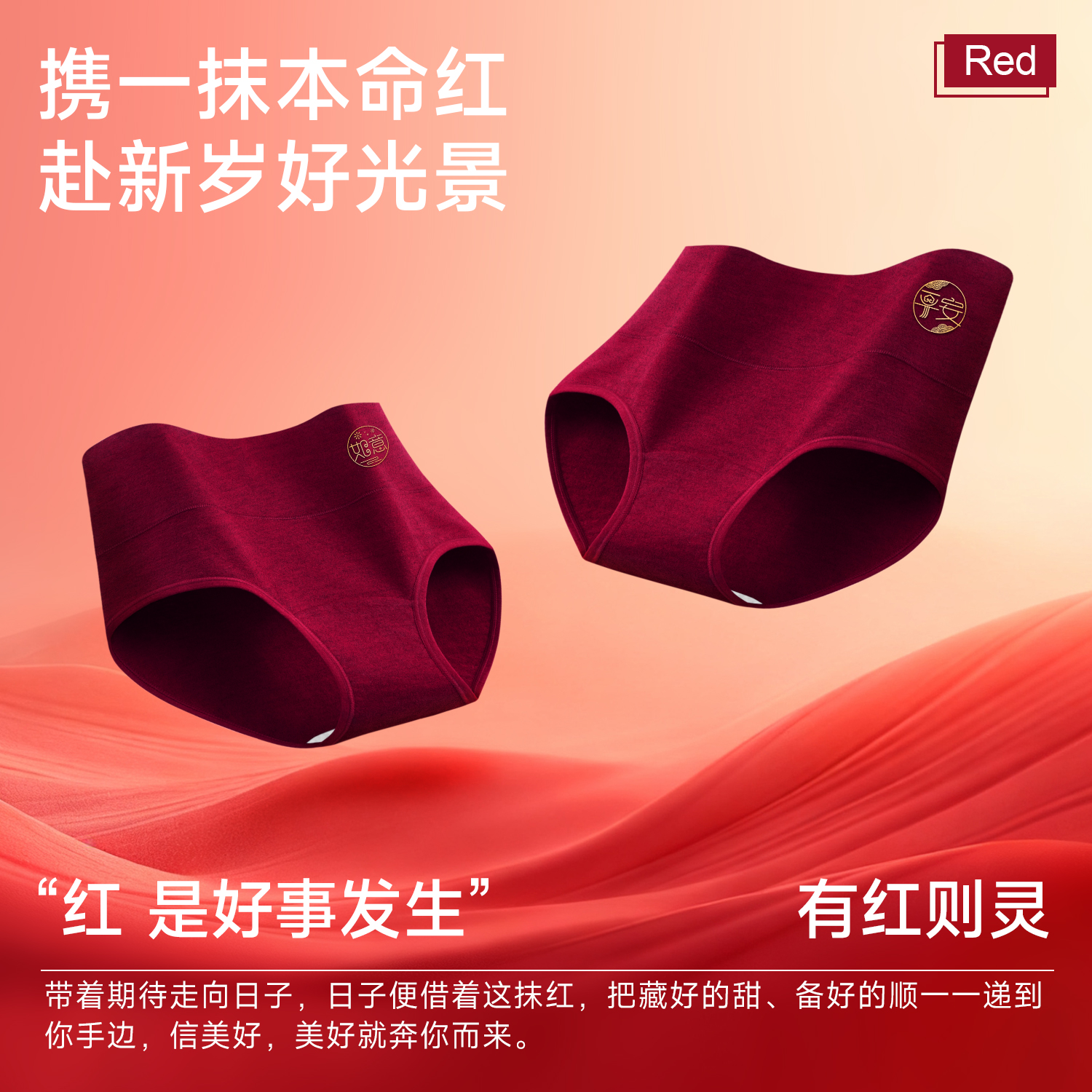 红色三角裤 有棵树莫代尔内裤 女纯棉全棉裆抗菌无痕透气中高腰大码