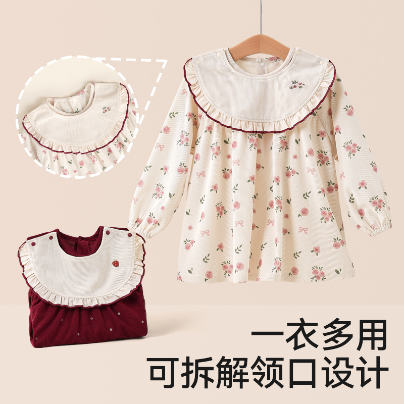 宝宝罩衣秋冬防水防污吃饭围兜儿童洋气公主裙罩衣围裙反穿衣