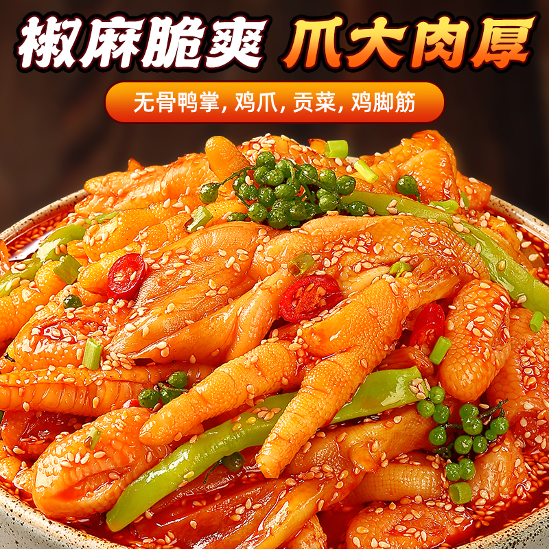 百草味虎皮凤爪400g 鸡爪鸡肉休闲熟食卤味休闲零食 14只袋装