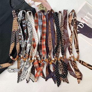 美拉德复古串珠可调节丝巾项链女款 百搭毛衣链挂脖小众系脖配饰潮
