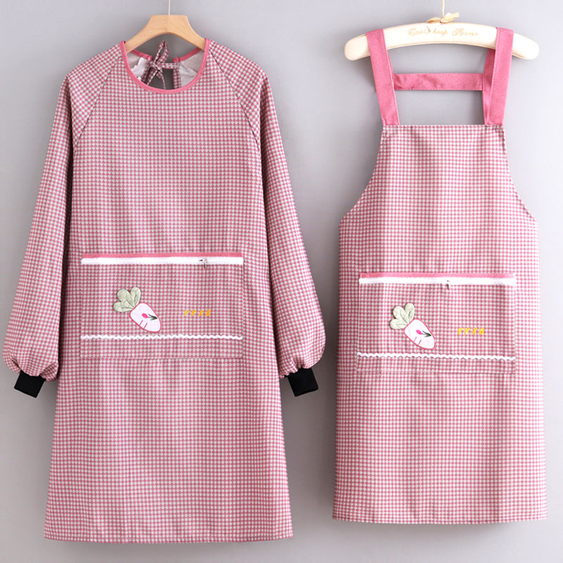 家用厨房防水防油围裙餐饮专用成人工作服长袖 罩衣女做饭围腰男士