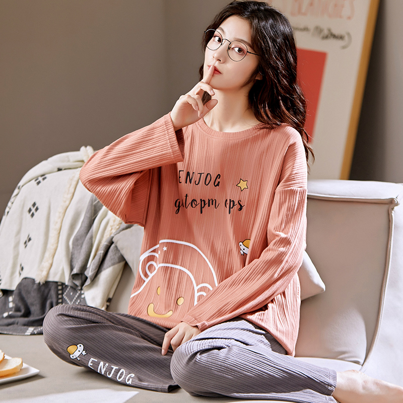 2025新款 宿舍家居服套装 长袖 学生韩版 棉质可外穿大码 睡衣女春秋季