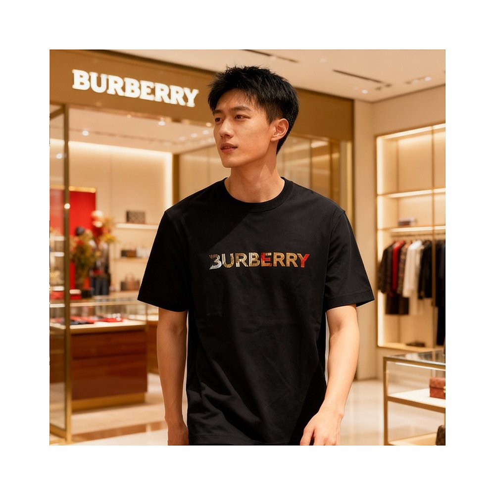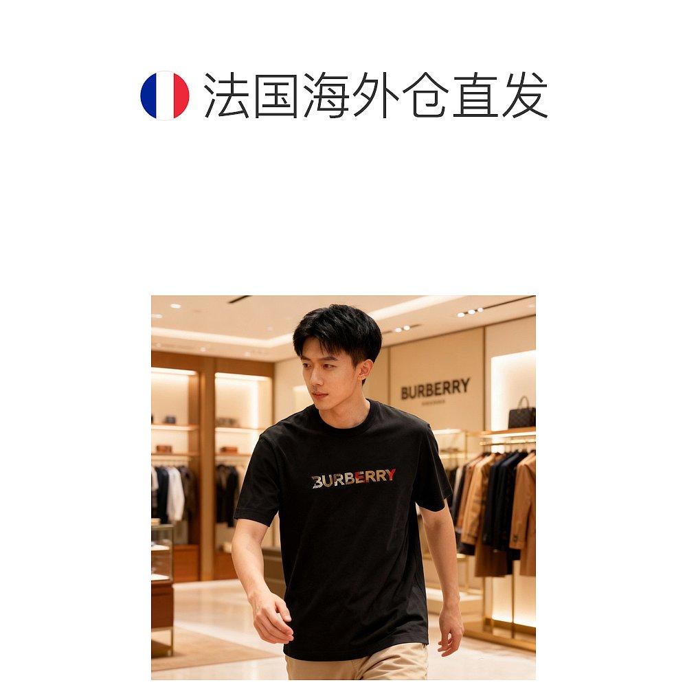 黑色棉质徽标印花圆领短袖 男士 T恤 博柏利 自营欧洲直邮Burberry