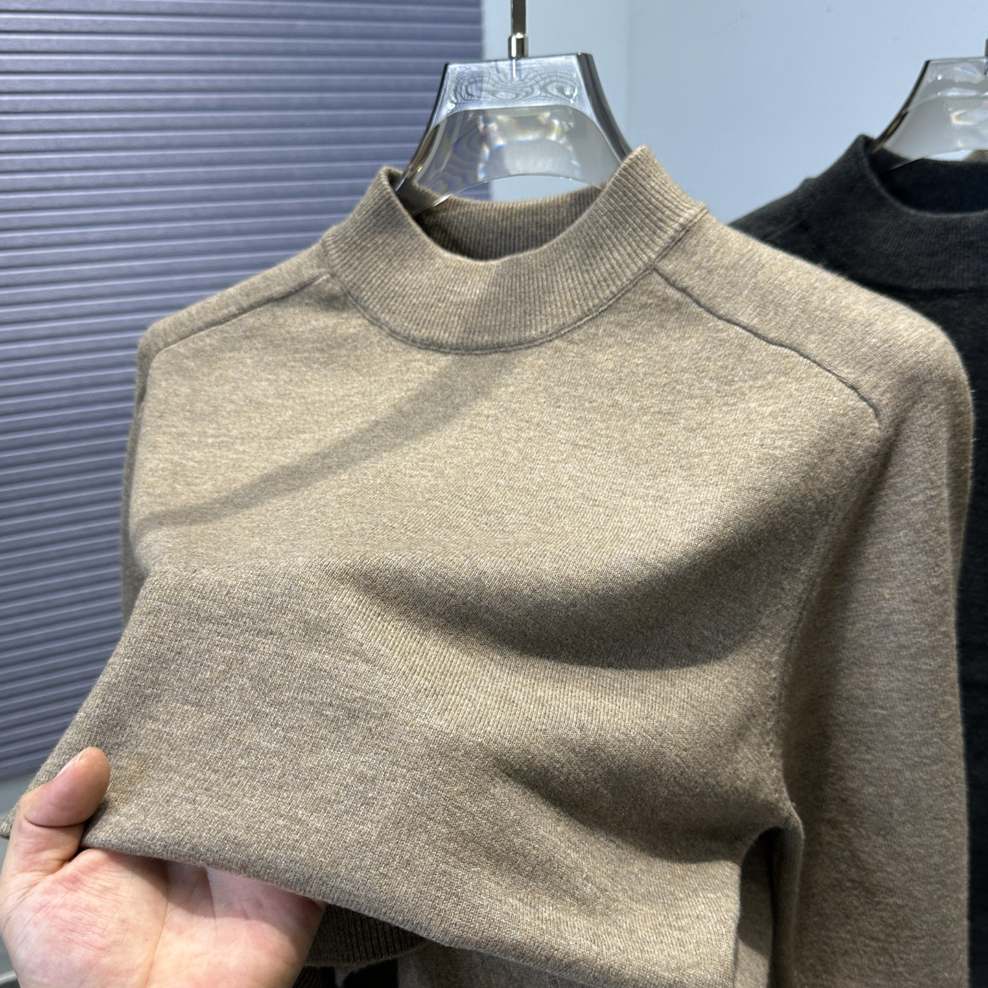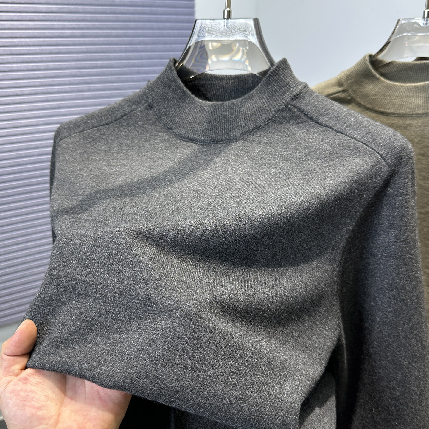 加厚针织衫 德绒打底衫 半高领保暖内搭长袖 新款 中领毛衣潮 男秋冬季