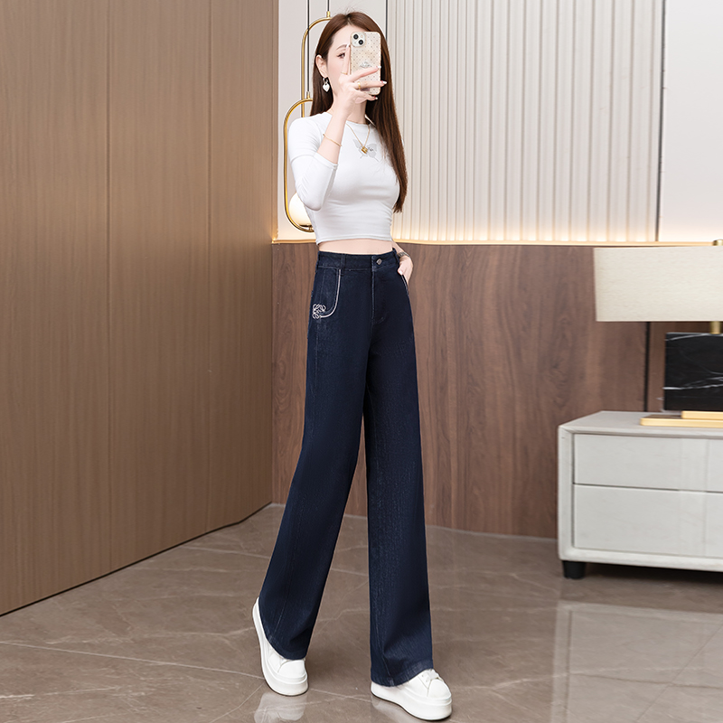 垂感拖地长裤 子女2025高腰弹力气质修身 子 阔腿牛仔裤 春秋窄版
