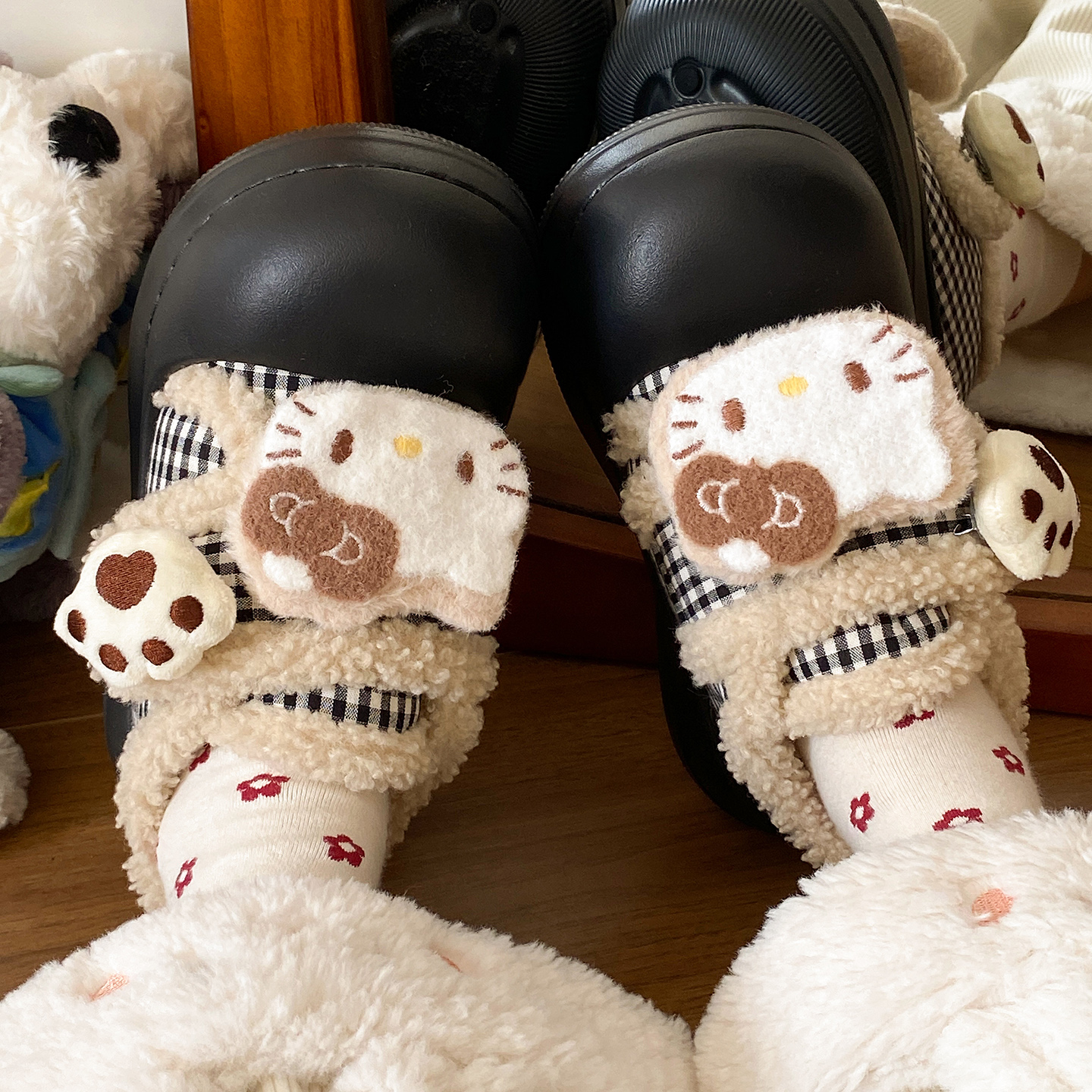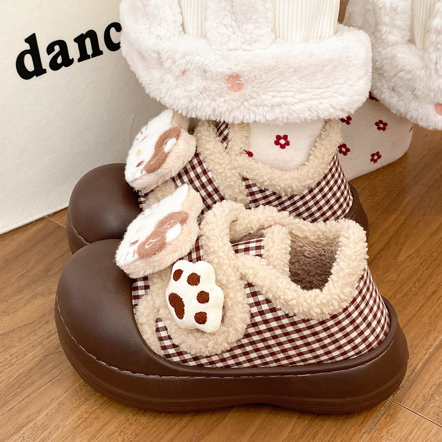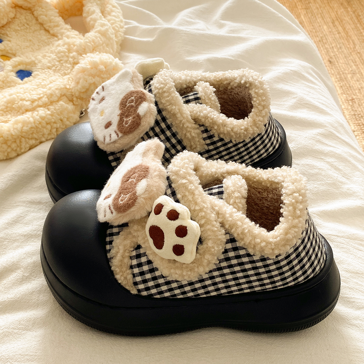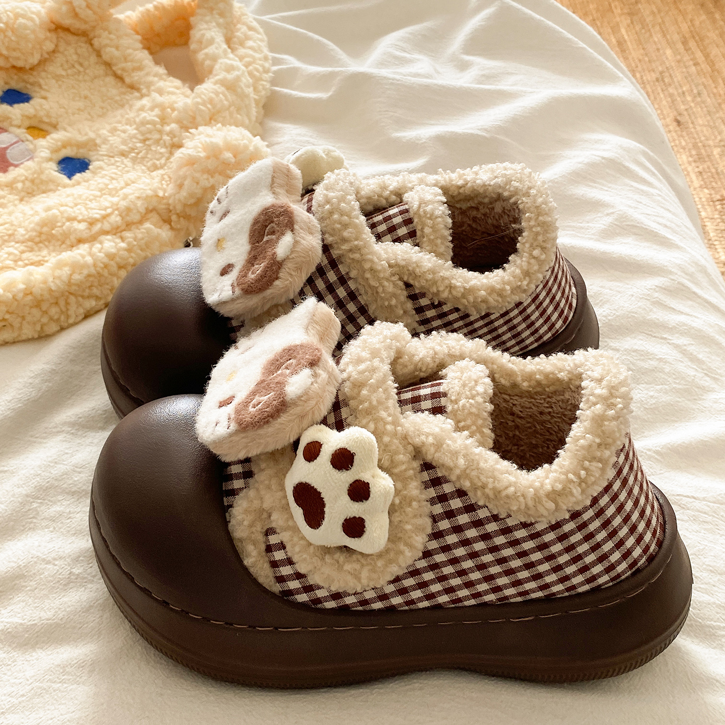 朴西朵朵绒情侣毛绒棉拖鞋 女士秋冬保暖防滑抗菌居家室内毛毛拖鞋