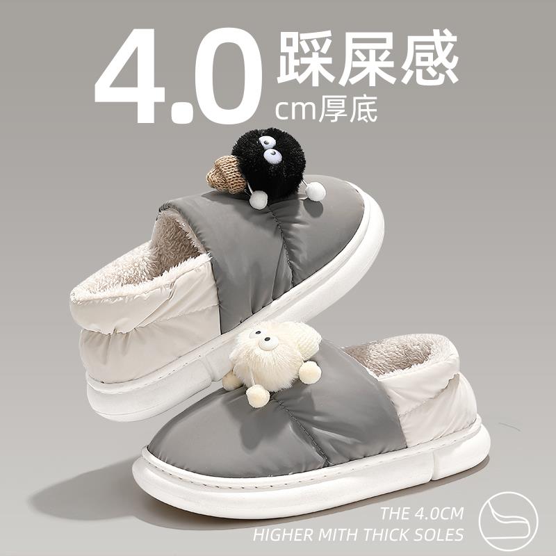 保暖买一送一室内家居外穿情侣加厚拖鞋 冬季 羽绒布棉拖鞋 2025新款