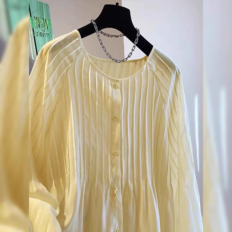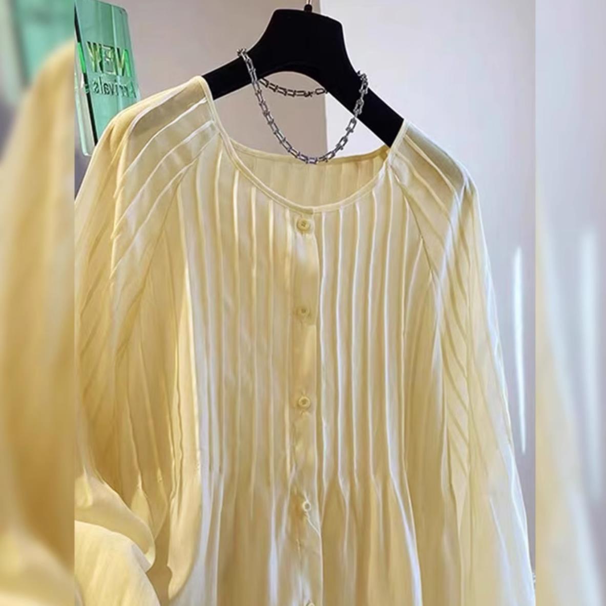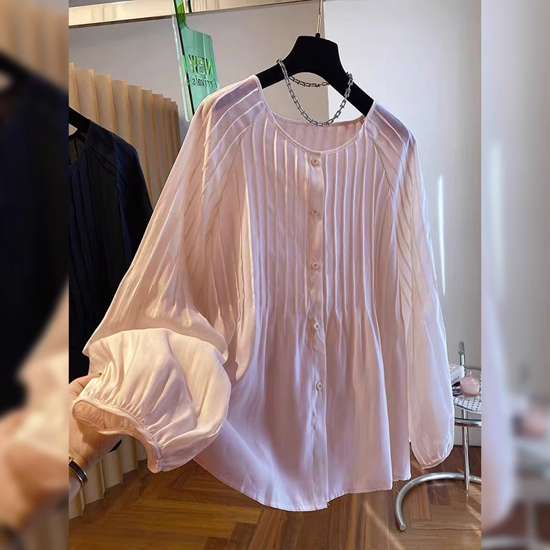 胖妹妹减龄洋气百褶法式 长袖 漂亮小衫 女2025春秋新款 上衣衬衣 衬衫