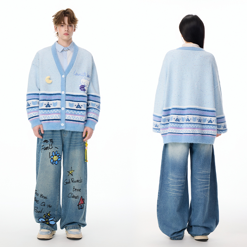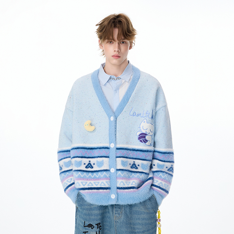 百搭外穿拉链线衣外套 慵懒风潮牌宽松针织衫 立领开衫 毛衣男秋冬季