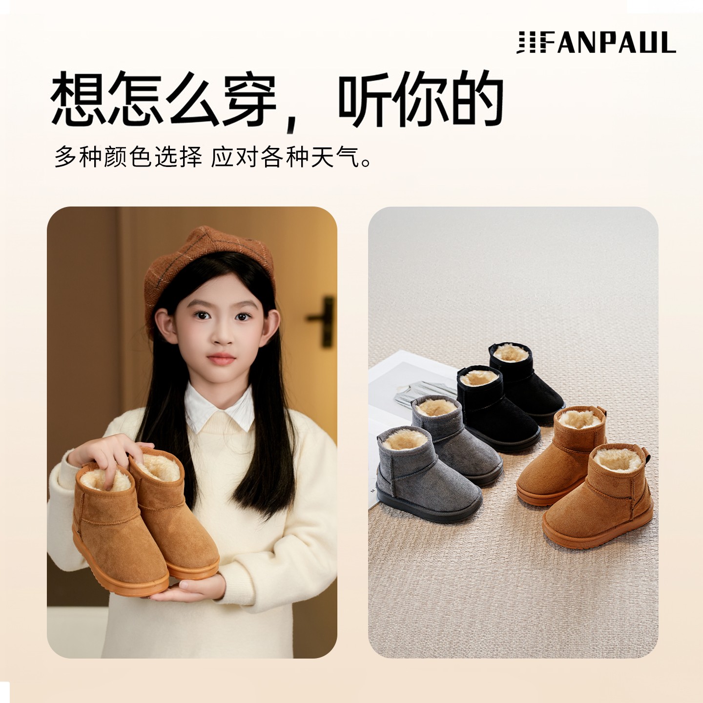 子中小童宝宝皮毛一体棉鞋 男童加绒鞋 2025新款 儿童雪地靴女童冬季