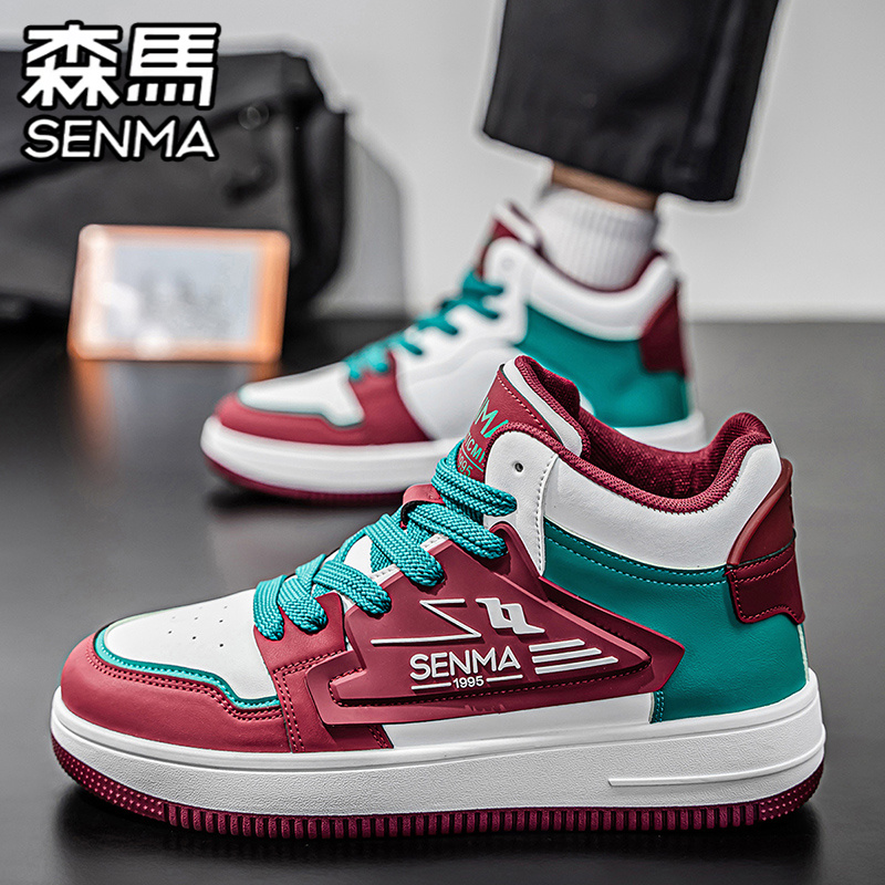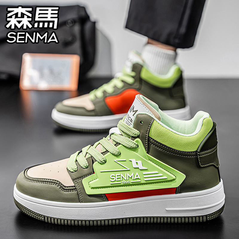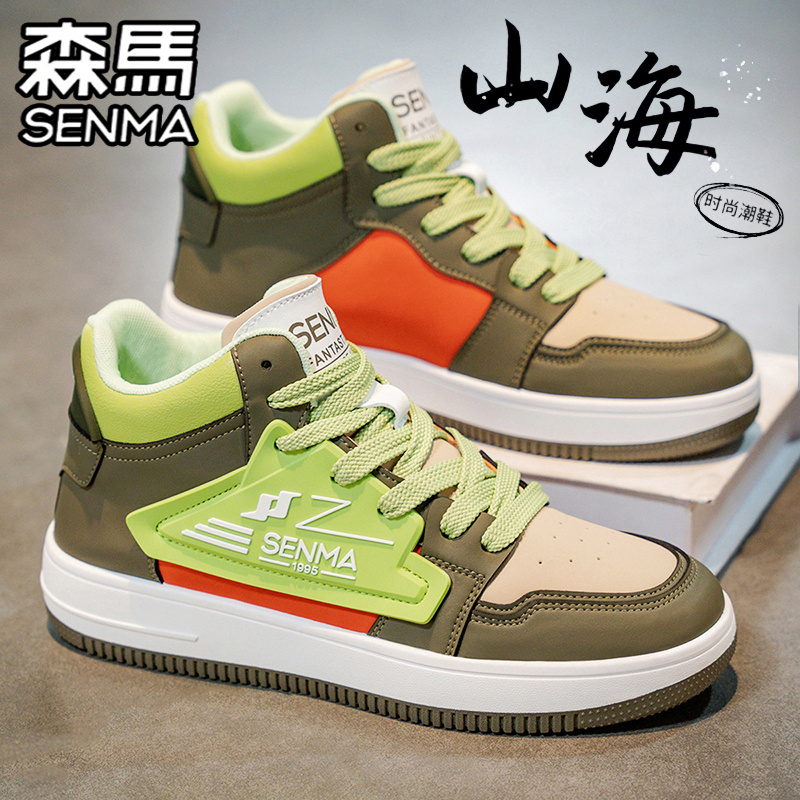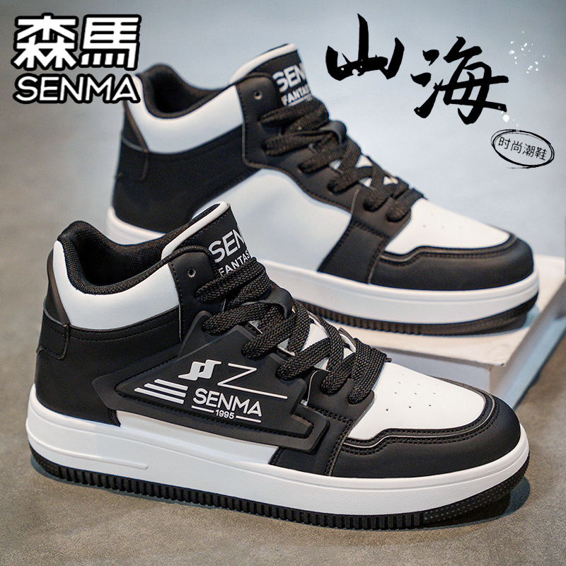 学生设计小众百搭小白潮鞋 皮面运动休闲潮牌板鞋 秋季 森马高帮男鞋