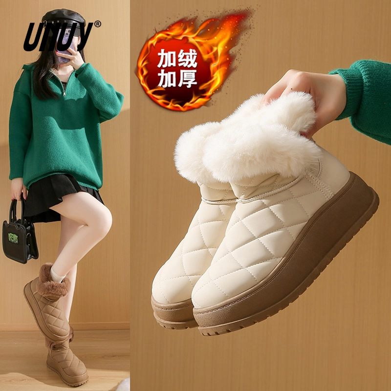 保暖加绒面包鞋 防水短筒增高棉鞋 新款 松糕厚底雪地靴女2025年冬季
