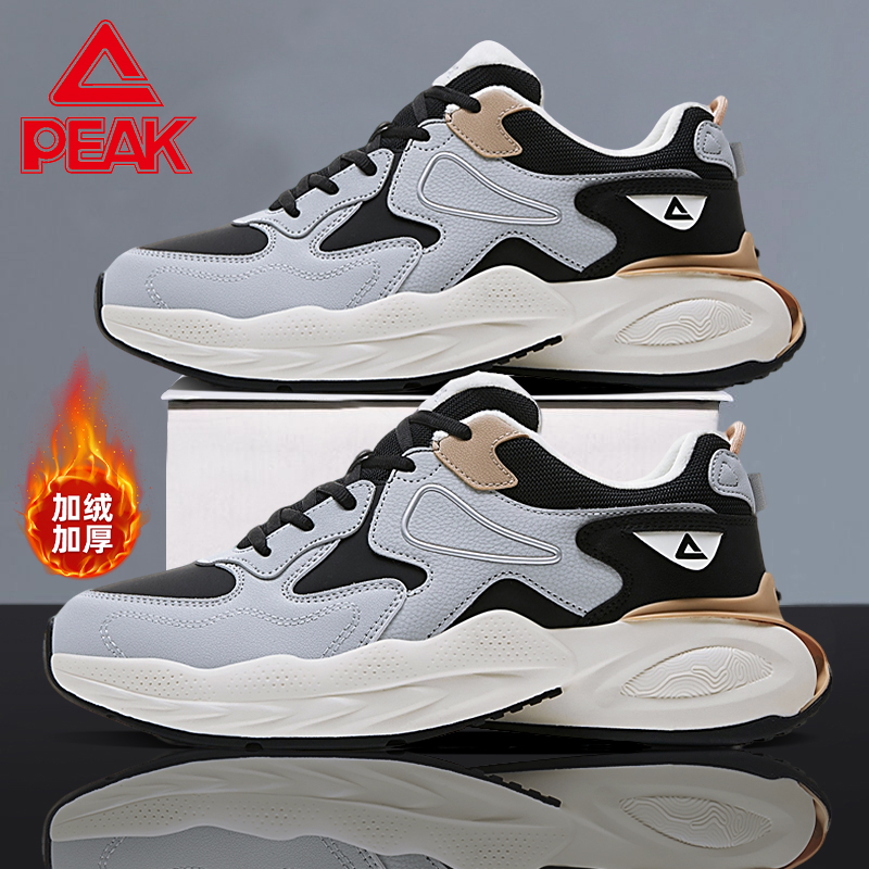 2025新款 厚底面包鞋 冬季 保暖棉鞋 子 匹克男鞋 加绒运动鞋 态极老爹鞋
